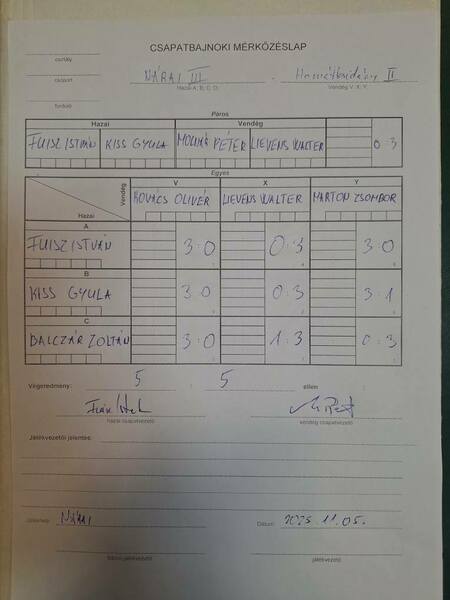 NÁRAI III. - HORVÁTZSIDÁNY SC II: 5:5