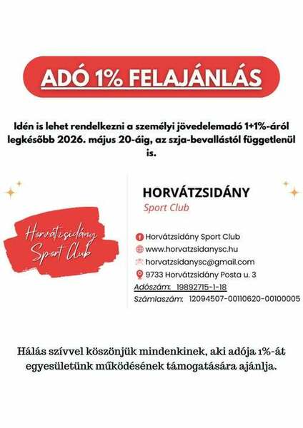 2026. február 18., 09:12Adó 1% felajánlással a sportért