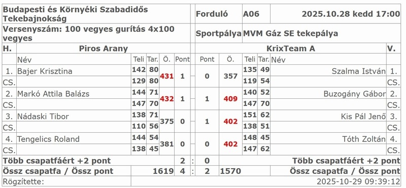 Piros Arany - Krix A 4:2 (1619:1570)