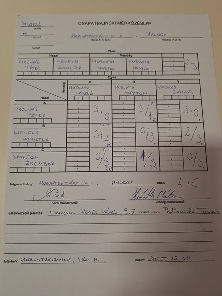 2025. december 10., 09:20Horvátzsidány SC II - Halogy