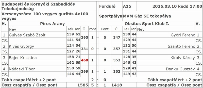 Ősszel meglepő vereségbe futott bele teke csapatunk az Obsitos ellen. A tavaszi visszavágón már nem esett ebbe a hibába együttesünk, így sikerült magabiztosan visszavágni. 5:1 (1585:1418)