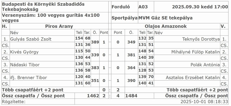 Piros Arany - Olajos Amazonok 2:4 (1462:1484)